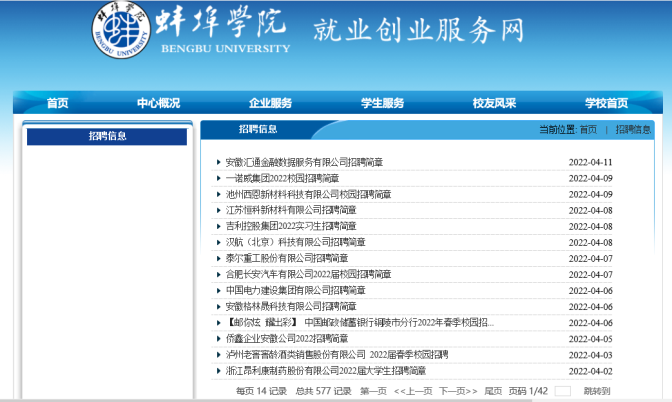 3月初,学校与知名招聘平台“前程无忧”正式就线上招聘会开展合作洽谈,基于前程无忧的优质品牌、专业实力、业内资源,共计选取了超过1000家企业,参与“蚌埠学院2022年春季校园线上双选会”,提供岗位超过10000个。