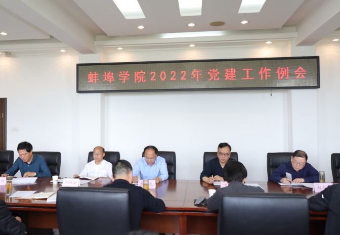 4月26日下午,蚌埠学院2022年党建工作例会在行政楼第二会议室召开。党委书记陈国龙主持会议,校领导丁明、郑桂富、赵大为、郭有强以及学校党建工作领导小组其他成员出席会议。
