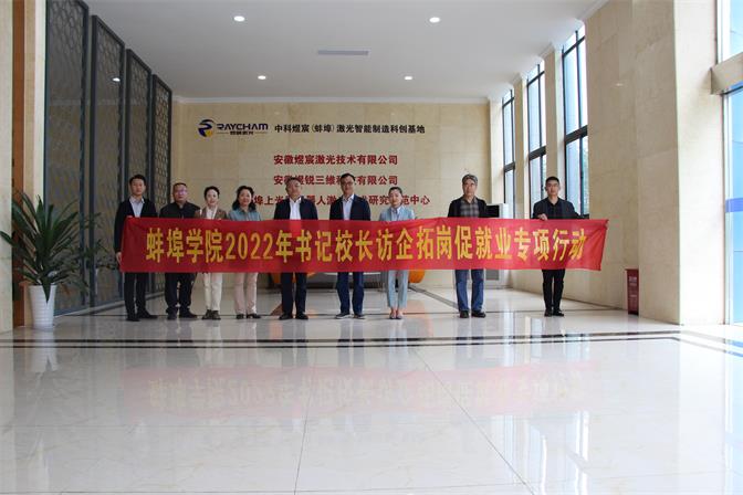 4月28日上午,蚌埠学院党委副书记、校长丁明带队赴山水装饰集团、安徽煜晨激光技术有限公司开展访企拓岗专项行动,全力促进毕业生更加充分更高质量就业。学生处、艺术设计学院等相关部门负责人陪同参加。
