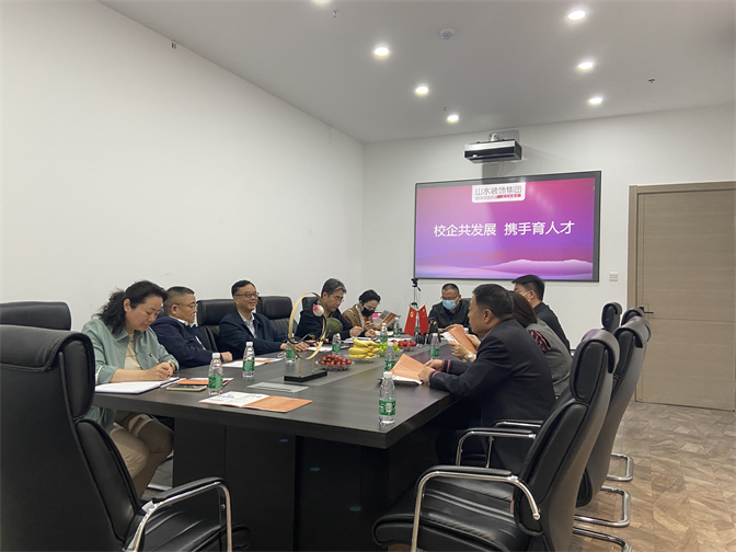 在蚌埠市山水装饰集团,丁明一行在集团副董事长李明义、总经理张士云的陪同下,详细了解了公司的发展历程、公司架构、业务部门运行情况和实际工作情况。在座谈时,丁明表示,蚌埠学院高度重视人才培养,作为地方应用型本科高校,希望和地方企业加强产学研合作,实现产教融合。双方还就人才培养、学生的职业规划等方面进行了交流。