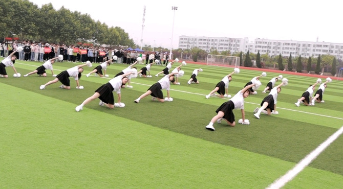 为庆祝“五四”青年节,进一步推进学校体育文化活动的蓬勃发展,丰富校园文化,活跃学习氛围,校健美操俱乐部高级会员汇同校啦啦操队举行了首次“啦啦操表演周”活动。4月30日,在经济与管理学院趣味运动会开幕式上表演,进行助演活动,精彩的表演为开幕式增色,得到了老师同学的一片赞许。5月2日和5月4日晚,在第一田径场分别进行了两场表演,在彰显活力欢快和谐的音乐伴奏下,队员们纷纷化身“畊宏女孩儿”,激情澎湃、热力四射,跳出青春的节拍,舞动生命的色彩,不断感染着操场上其他同学,很快,运动场成了一个展示健身、形体与韵律美相融合的快乐海洋。