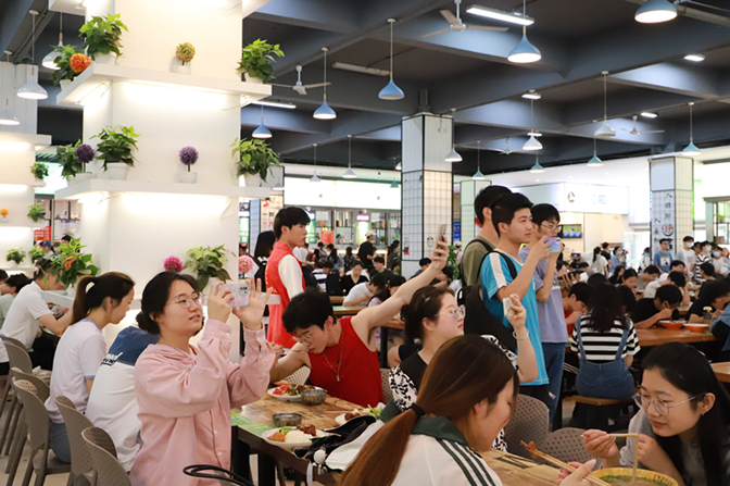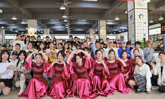 5月20日,由校团委与饮食管理中心共同举办,公共艺术教育俱乐部承办的“520,我向二十大表白”文艺快闪活动在第一食堂成功举行。