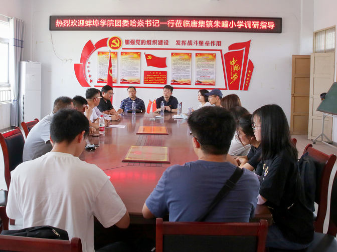 在朱疃村,驻村干部余建杰带领团委一行考察了朱疃村村情村貌、乡村产业振兴项目等情况,师生就农产品开发、农副产品包装推广等工作进行深入探讨,寻求合作契机。在朱疃小学,哈焱详细介绍了暑期社会实践活动,围绕关爱留守儿童、法制知识普及、心理健康教育等问题与校方沟通,初步搭建暑期社会实践合作平台。