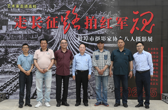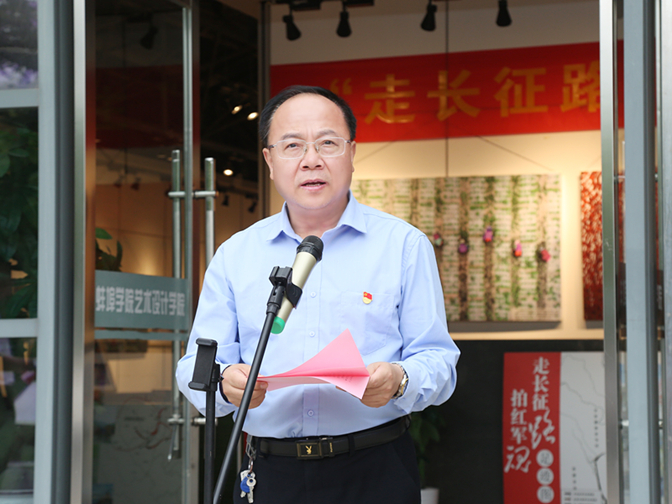 陈国龙在致辞中表示,此次我校与省摄影家协会及市文学艺术家联合会共同举办的“走长征路,拍红军魂”主题摄影展,是学校推进党史学习教育常态化长效化的重要活动安排。参展的作品,用镜头描绘党史,追求思想性、艺术性、观赏性的统一,既是一场艺术的盛宴大餐,更是一场生动的党史大课。是我校不断创新方式方法,高标准高质量推进党史学习教育联学联建的一项重要活动和重要成果,更是将党史学习教育与文化育人相结合的一次具体行动,也是将艺术文化作为大学生思想政治教育的有效载体和开展党史学习教育的生动教材。