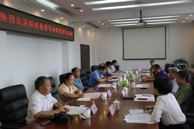 8月25日,桐柏县县委二级巡视员马哲宇、县政协副主席马青率桐柏县考察团一行来校调研淮河文化研究。学校党委副书记、院长丁明热情接待了马哲宇一行。