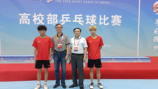8 月 24 上午,安徽省第十五届运动会高校部乒乓球比赛在安徽科技学院举行,来自全省高校 40 支代表队在比赛中展开为期 6 天的激烈角逐。8 月 26 日上午,党委副书记、院长丁明,党委副书记韦文联前往赛场加油鼓劲,并于赛后看望慰问了我校乒乓球队参赛运动员和教练员。