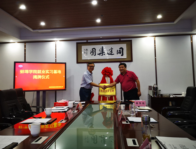 座谈会后,戚晓明与唐福亮签订《安徽同建建设集团有限公司和蚌埠学院土木与水利工程学院战略合作框架协议》,丁明和杨浩为就业实习基地揭牌。
