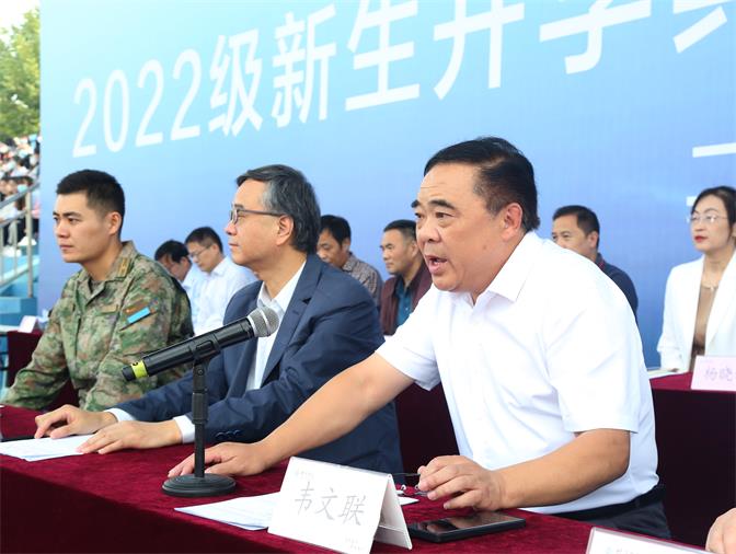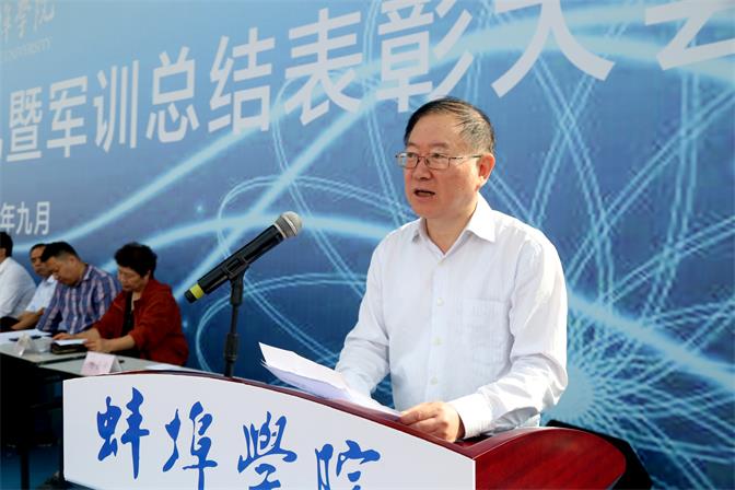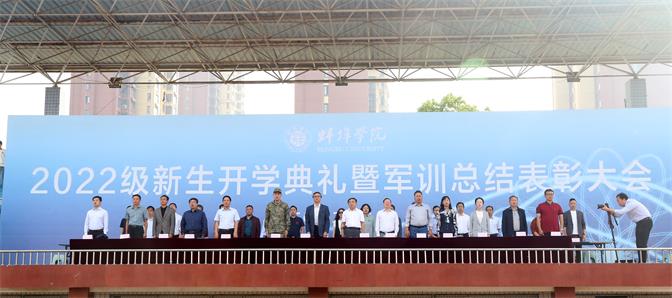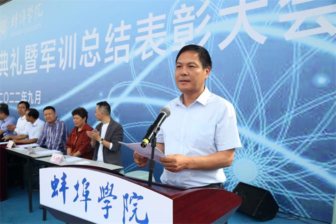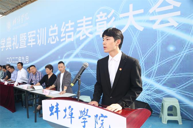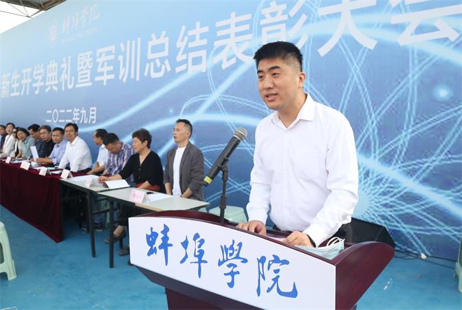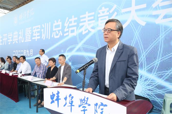 金秋九月喜迎八方学子,龙子湖畔共启逐梦征程。9月27日上午,蚌埠学院2022级新生开学典礼暨军训总结表彰大会在第一田径运动场举行。大会由党委副书记韦文联主持。校领导及承训部队领导出席典礼。军训领导小组成员、各学院主要负责人,全体参训教官、新生辅导员、2022级新生参加典礼。