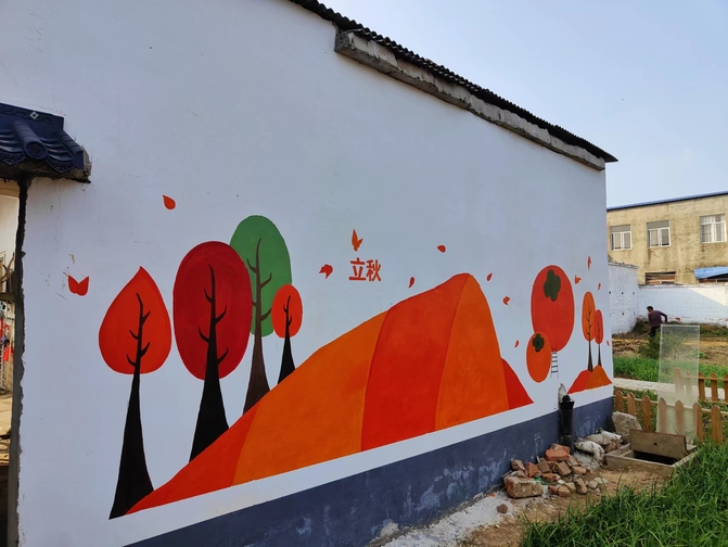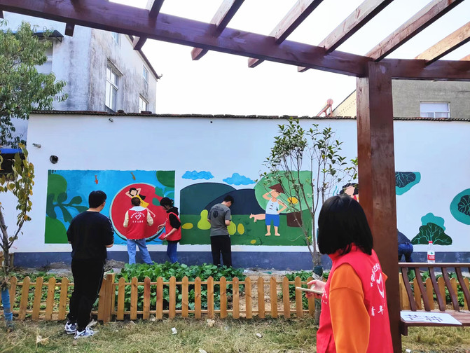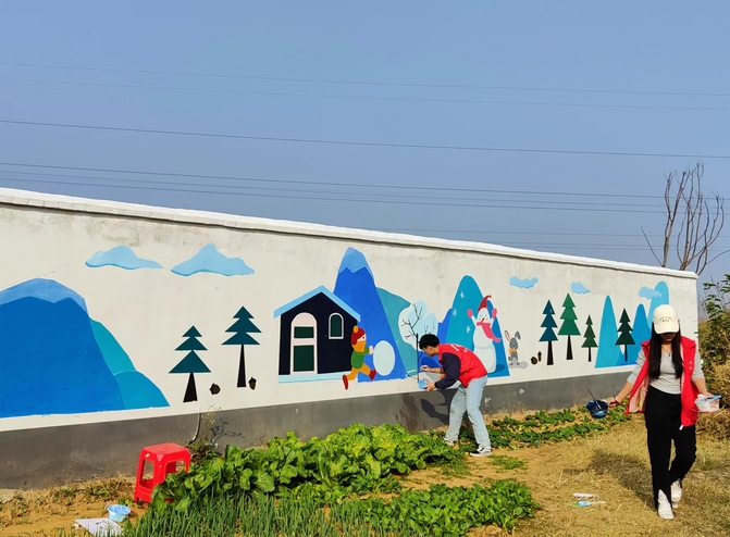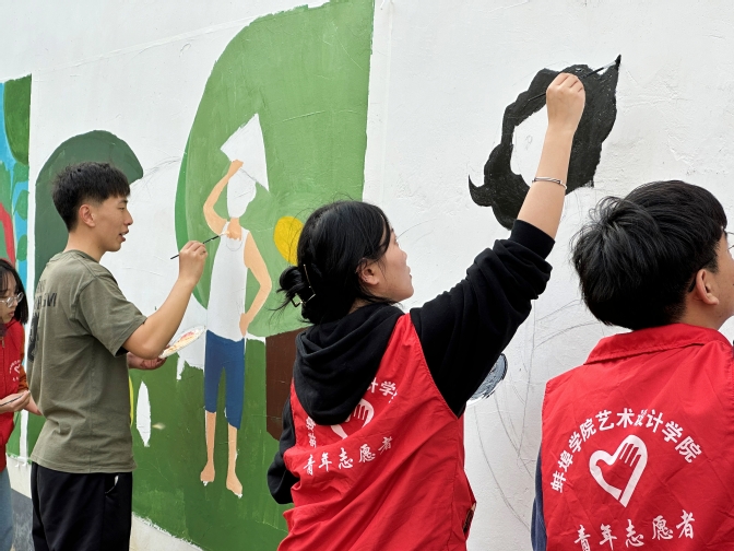 赤诚之心践使命,妙笔生花绘蓝图。11月1日早晨,蚌埠学院艺术设计学院25名学生志愿者在艺术设计学院院长胡飞、党委副书记高善春、副院长王磊的带领下集中乘车来到蚌埠市淮上区八大集村。该村三面为北淝河环绕,地形独特、风景优美,是一个乡村旅游资源丰富的村庄。同学们用丰富多彩的颜料,以二十四节气为素材画下社会主义新农村的美丽景象。惟妙惟肖的人物图案,栩栩如生的场景描绘引得不少村民驻足围观,对同学们的作品都给予高度的认可和赞赏。同学们通过实际行动,美化乡村环境,带动乡村特色生态旅游发展,助推新农村乡村文明建设。