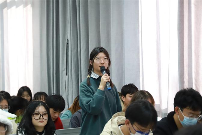 上午九点讲堂正式开始,杨志军从普通话的概念、特点以及发音要求给学生们展开了详细的介绍。他以唐诗宋词元曲为例,深入浅出的讲解了普通话的音乐性特点,同时现场展示了安徽省不同地方的方言,直观的向学生们展示普通话地域性的特点。