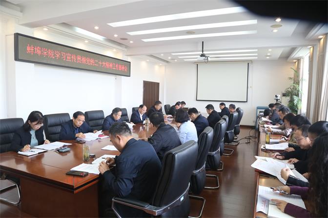 11月9日上午,蚌埠学院学习宣传贯彻党的二十大精神工作部署会在行政楼第二会议室召开,党委书记陈国龙出席会议并讲话。会议由党委委员、宣传部部长李荣主持。