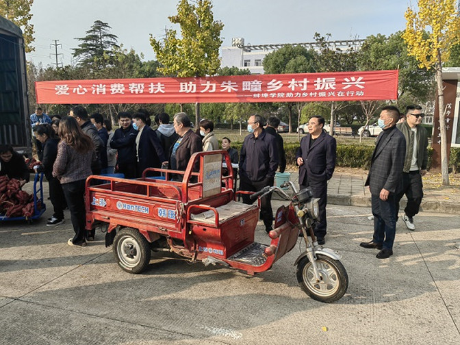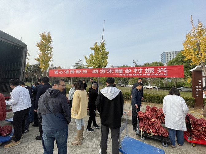 为进一步巩固脱贫攻坚成果与乡村振兴有效衔接,助力怀远县唐集镇朱疃村乡村振兴工作向前发展,蚌埠学院马克思主义学院驻朱疃村第一书记、工作队队长余建杰充当特色农产品产地和选派单位之间的桥梁纽带,积极对接学校工会购买特色农产品1.3万斤蜜薯发放给全校在职和离退休教职工。学校党委副书记韦文联到现场指导发放工作。