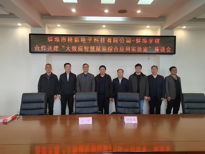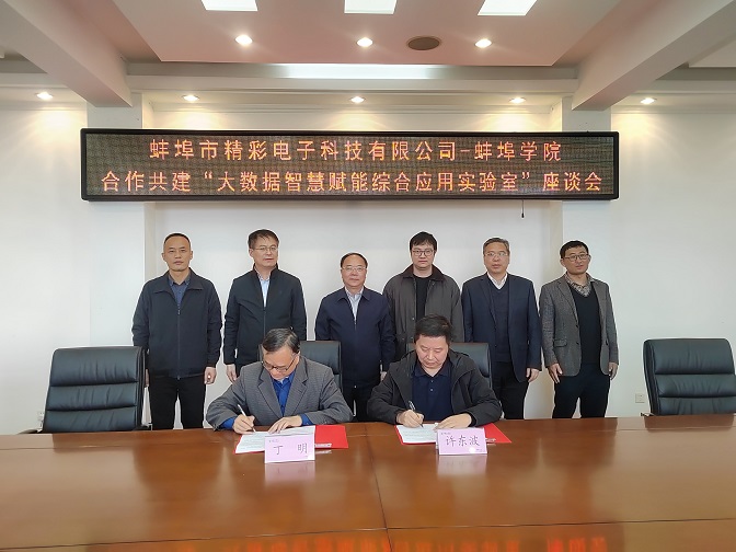 为了进一步加强校企合作,服务地方产业发展,11月9日下午,蚌埠学院与蚌埠市精彩电子科技有限公司在行政楼第二会议室举行校企合作共建“大数据智慧赋能综合应用实验室”签约仪式。蚌埠学院党委书记陈国龙,党委副书记、院长丁明,蚌埠市精彩电子科技有限公司董事长许东波、项目研发副总经理石伟健,科研处处长武杰、计算机与信息工程学院院长黄迎辉等参加签约仪式。