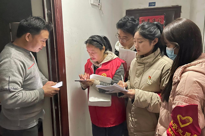 在龙湖派出所民警的带领下,来到龙湖嘉园和社区工作者对接后,按“派出所—社区—党员大学生”三级联动工作模式,根据需要走访的三栋居民楼,将实践团分成3个队,每个队又分成了2个组,每组由一名派出所民警和一个社会工作者带队。虽然活动进行中突然下了雨,但是大学生党员们热情不减,逐家逐户上门、有礼有度交流,争取最大化将安排的任务宣传到、宣传好,将要求的信息收集全、收集细。
