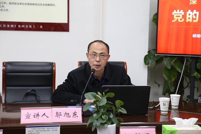 11月22日和24日,根据蚌埠市委安排,市委宣讲团成员、蚌埠学院马克思主义学院党总支书记、院长邬旭东先后走进蚌埠市政法委和蚌埠市卫健委,宣讲党的二十大精神。