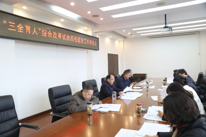 会上,学校党委部署了“三全育人”综合改革试点建设验收工作。“十大育人”体系牵头部门逐一汇报了“三全育人”综合改革建设工作完成情况。