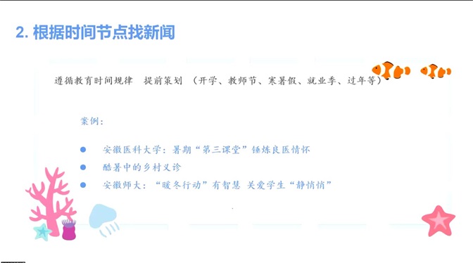 讲座中,方梦宇从如何找新闻、如何采新闻、如何写新闻以及教育新闻写作之我见四个方面出发,对教育类新闻写作的常见的问题进行总结梳理和分享。讲座内容详实、案例丰富,方梦宇结合自己的记者实践经历,以多篇刊发的优秀新闻稿件为例,条分缕析得仔细讲解了高校教育新闻中选题的发现、特色亮点的挖掘、采访问题的设置、素材的安排和取舍、文字风格的异同和转化等多方面内容。