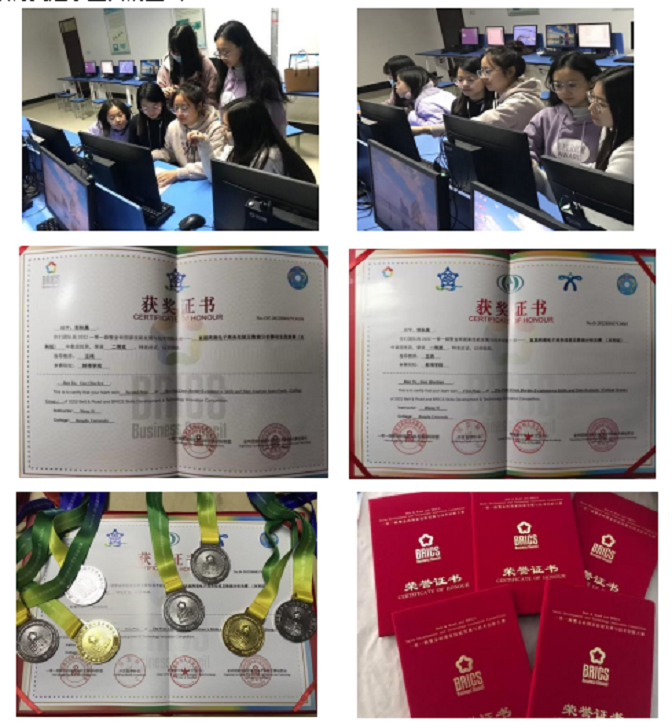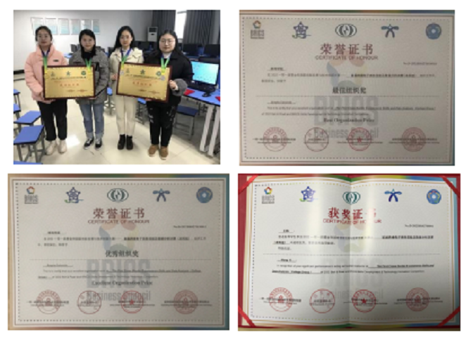 本届大赛(本科组)共有来自全国各地本科院校的633支队伍报名,经过初赛和复赛的激烈角逐,共有100支队伍入围决赛。我校计算机与信息工程学院2020级数据科学与大数据技术专业学生班宇、郭秋晨作为我校代表队之一入围总决赛,在决赛第一天的技能赛长达9个小时的高强度竞赛中奋勇拼搏,灵活运用数据采集、数据清洗、数据分析、数据挖掘、数据可视化及智能算法预测等各项专业技术知识顺利完成当天比赛,并与其他59支队伍一起晋级次日的答辩赛;班宇、郭秋晨同学在答辩赛中沉着冷静、思路清晰解读分析数据、回答评委提问,最终斩获该赛项全国总决赛一等奖(金牌);洪静雯、朱陈晨等同学获得二等奖(银牌)。蚌埠学院获得“最佳组织奖”和“优秀组织奖”,王祎老师获得“优秀指导教师”荣誉称号。
