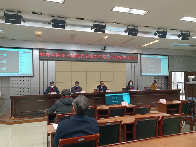 云端共谋新发展,聚力学院新未来。12月28日,蚌埠学院第三届教代会暨第三届工代会第三次会议以线上线下结合的形式召开,学校党委副书记、院长丁明代表学校向大会作题为《全面贯彻落实党的二十大精神奋力开创学校内涵式高质量发展新局面》的工作报告。党委副书记韦文联主持会议并致辞。