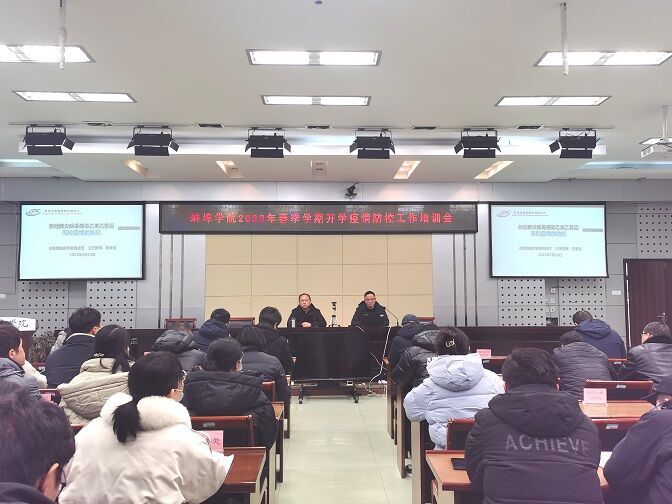 为进一步提升疫情防控能力,提高疫情防控专业化水平,有力保障师生员工身体健康与生命安全,2月14日下午,蚌埠学院召开疫情防控专题培训会,邀请蚌埠市疫情防控专家组成员、市疾控中心防疫办主任、主任医师程孝连来校作疫情防控专题培训。会议由学校后勤处处长蔡友和主持,各学院、各部门负责人以及全体辅导员现场参会。