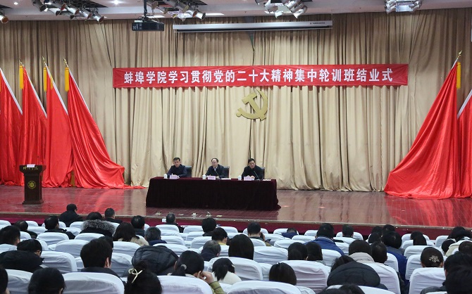 2月17日下午,蚌埠学院学习贯彻党的二十大精神集中轮训结业式在学术报告厅举行。党委书记陈国龙出席并讲话,党委委员、副院长郭有强主持,轮训班全体学员参加。