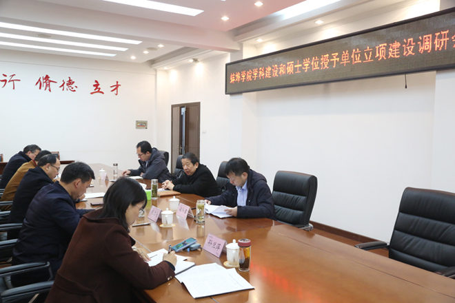 2月22日上午,省委教育工委委员、省教育厅副厅长储常连,省教育厅科研处处长梁祥君、副处长汪峰涛来我校调研指导学科建设和硕士学位授予单位立项建设工作。党委书记陈国龙,党委副书记、院长丁明,副院长张尔桂及相关职能部门负责同志参加调研座谈会。