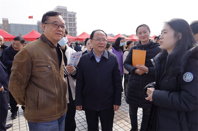 学校党委书记陈国龙,党委副书记、院长丁明,党委副书记韦文联亲临现场,与用人单位亲切洽谈,主动介绍学校基本概况,认真了解用人单位人才需求。他们表示,蚌埠学院毕业生素质良好,与合肥地区产业结构高度契合,希望校企双方持续发力,为实现更高层次、更高水平的校企合作而共同努力。活动现场,校领导更是与学校2023届毕业生亲切交谈,耐心询问毕业生就业落实情况,鼓励同学们提振信心、认真准备,早日进入职场,服务人民、奉献祖国。