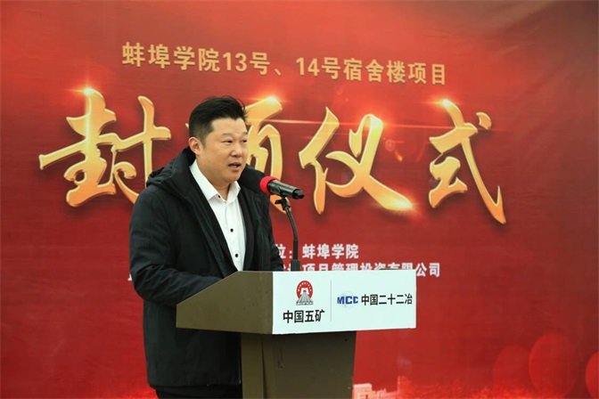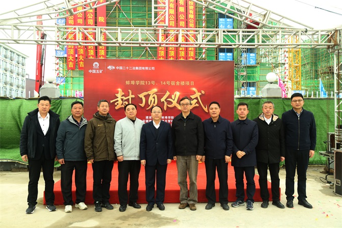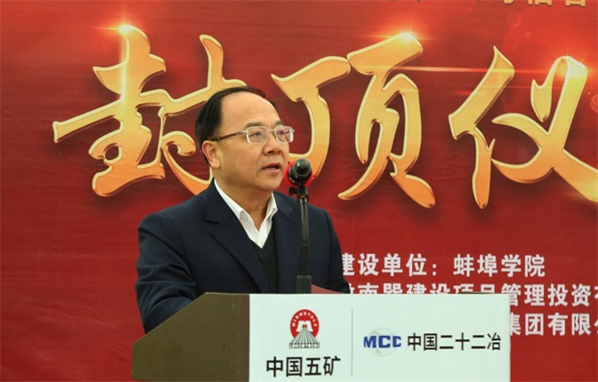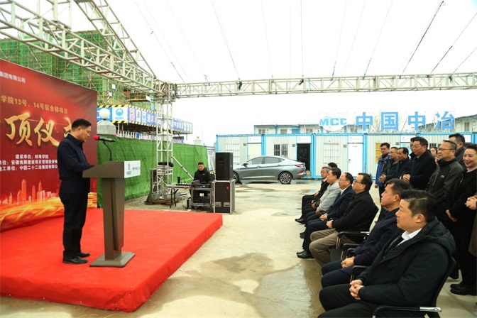 3月17日,蚌埠学院学生宿舍13-14号楼项目顺利封顶。校领导及学校相关职能处室负责人,施工单位、监理单位、跟踪审计单位的相关工作人员出席了封顶仪式。党委书记陈国龙出席封顶仪式并致辞。仪式由党委委员、副院长郭有强主持。