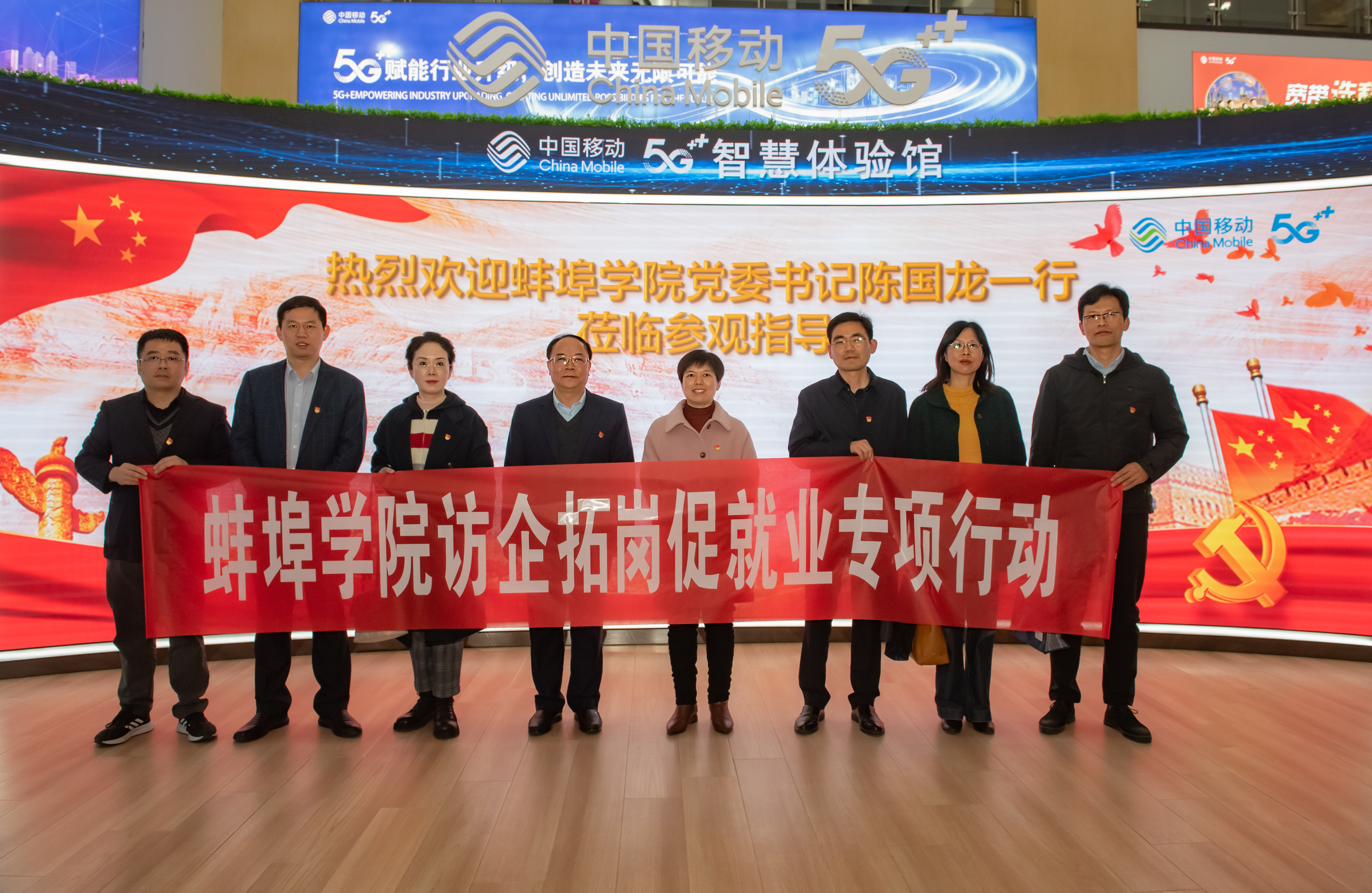 3月21日下午,学校党委书记陈国龙带队前往中国移动安徽有限公司蚌埠分公司开展访企拓岗促就业行动,蚌埠移动党委书记、总经理王树梅接待走访团一行。走访以座谈和参观形式展开。