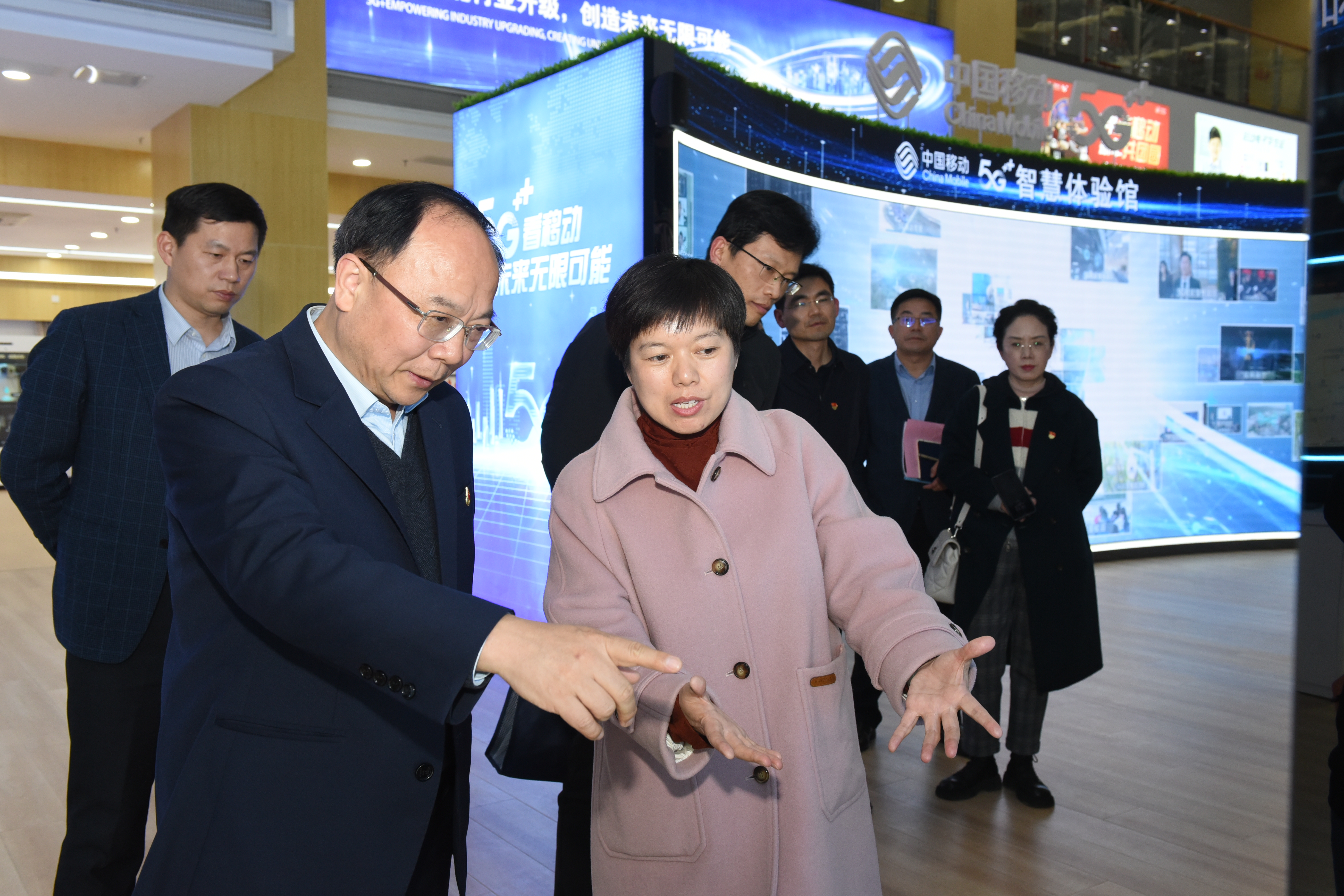 座谈会后,陈国龙一行参观了蚌埠移动5G信息化展厅,进一步了解中国移动在数字化、网络化、智能化等领域的探索。