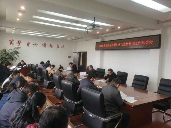 会上,宣传部详细解读了《安徽省学校安全条例》具体内容,保卫处就抓好贯彻落实,对校园安全工作进行了任务分解。韦文联指出,《安徽省学校安全条例》是我省首个以地方立法形式对学校安全风险防控、安全管理、事故处理、法律责任等作出专门规定。对于依法治校、保障学校和师生安全、维护学校正常教育教学秩序具有重要意义。