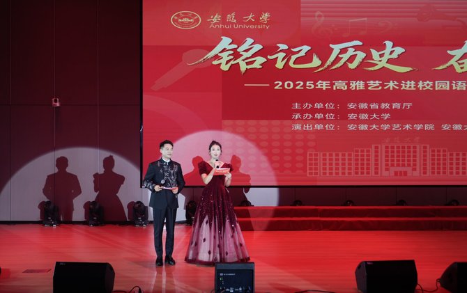 为进一步丰富校园文化生活,提升师生审美素养,9月28日下午,由安徽省教育厅主办、安徽大学承办的2025年高雅艺术进校园活动首场演出在我校图书馆学术报告厅隆重举行。安徽大学艺术学院、安徽戏剧学院师生带来的十余个精彩节目,为我校师生呈现了一场兼具思想性与艺术性的视听盛宴。