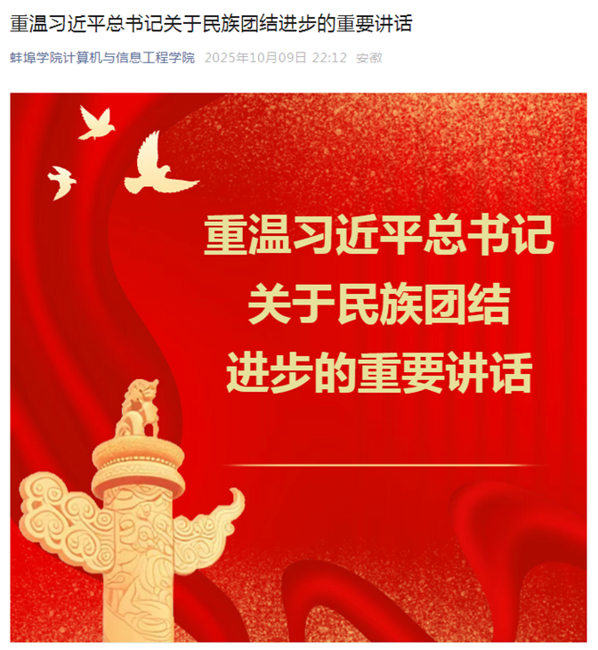 金秋时节,计算机与信息工程学院积极响应民族团结进步宣传月号召,精心开展系列教育活动,以实际行动筑牢民族团结之基。
