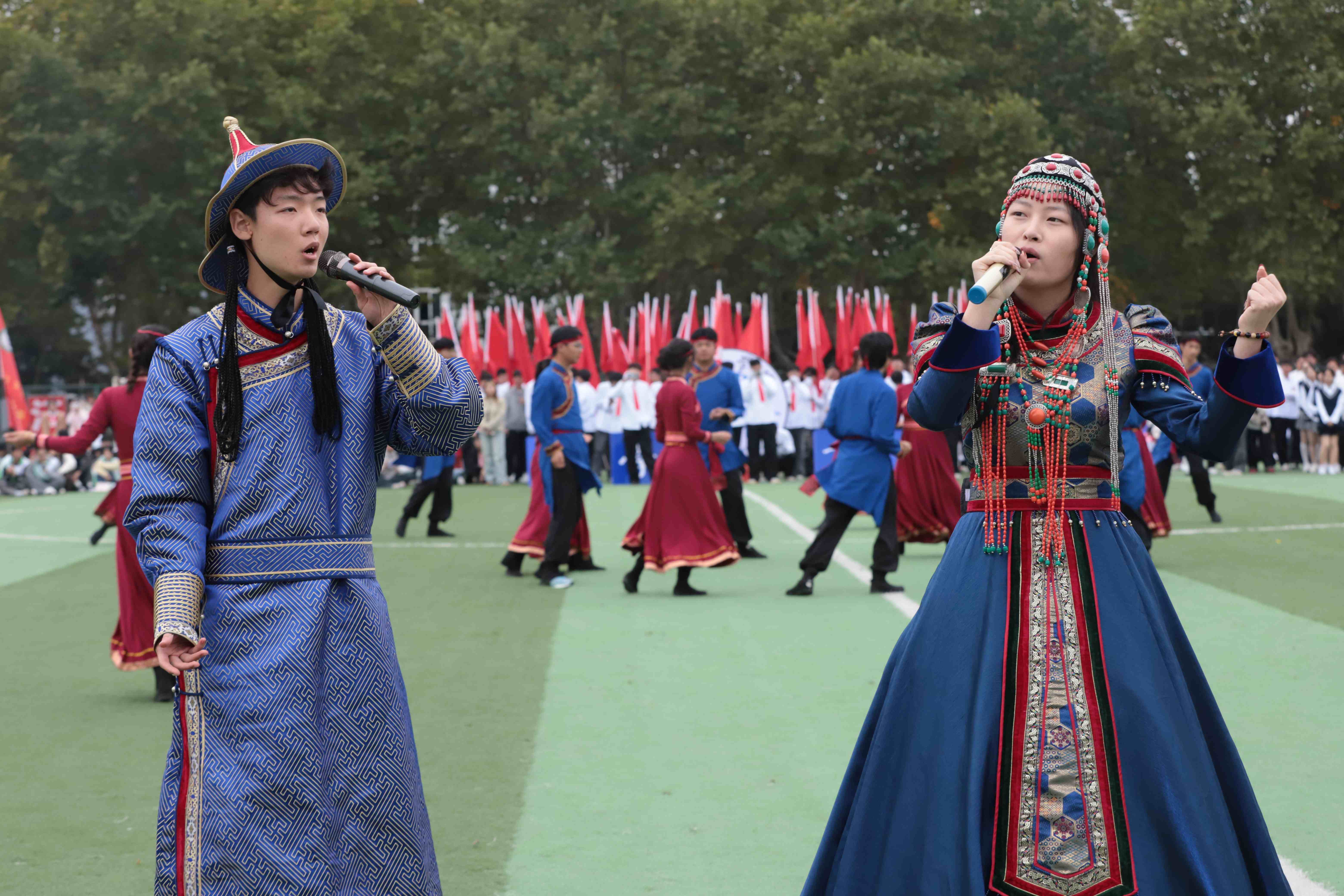 随后,《龙腾盛世,瑞狮呈祥》拉开文艺汇演序幕,祥龙翻腾、雄狮腾跃,传递着对运动会的美好祝愿。《红绸映山河》以热血红绸绘祖国壮阔,扬奋进之志,燃运动激情。《草原欢歌》展现了富有民族特色的舞蹈,也体现出中华民族共一心的精神。《乐动青春》中青年们活泼可爱的姿态,展现着中国青年昂扬向上的精神。《跆拳道》表演则体现了青年们百折不屈的意志和坚韧。《炫彩花球》中,少女们挥手跳跃、队形灵动,为运动员们加油助威,进一步点燃了全场的气氛。《养生操》中,表演者抬手舒肩、动作舒缓,将传统养生智慧与现代运动科学相结合,更传递出循序渐进、持之以恒的健康生活理念。