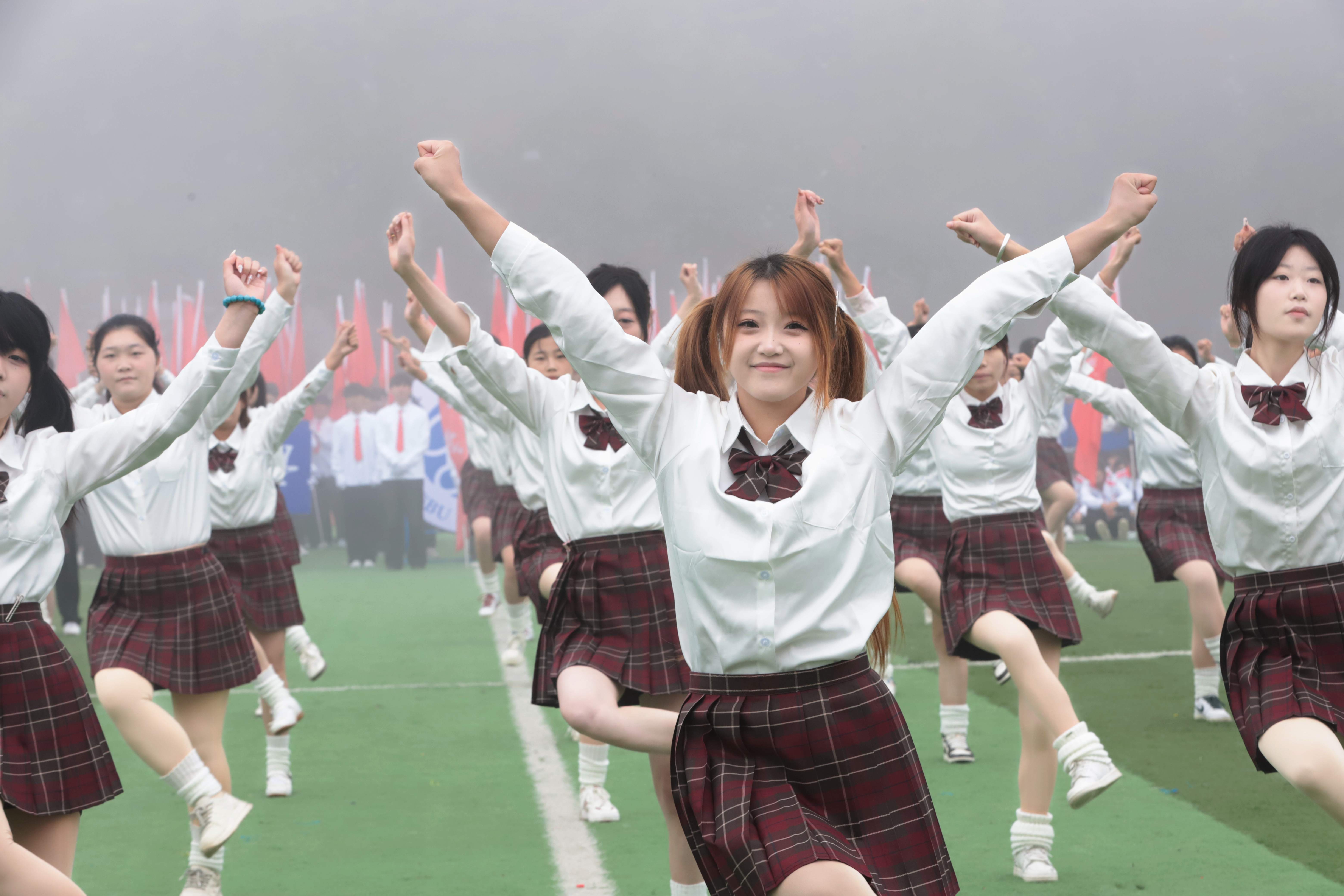 经济与管理学院方阵挥舞蓝黄花球,变换出寓意奋进的冲字造型;艺术设计学院将环保理念融入创意设计,展现美育成果;外国语学院方阵以红色伞阵组成巨幅国旗,彰显爱国情怀;文学与教育学院身着汉服,手捧鲜花,展现中华文化的深厚底蕴;音乐与舞蹈学院方阵踏着鼓点韵律,将赛场化作活力舞台;应用技术学院步伐铿锵,目光如炬,展现工匠精神。最后,裁判员方阵庄严入场,承诺将恪守职业道德,确保赛事公平公正。