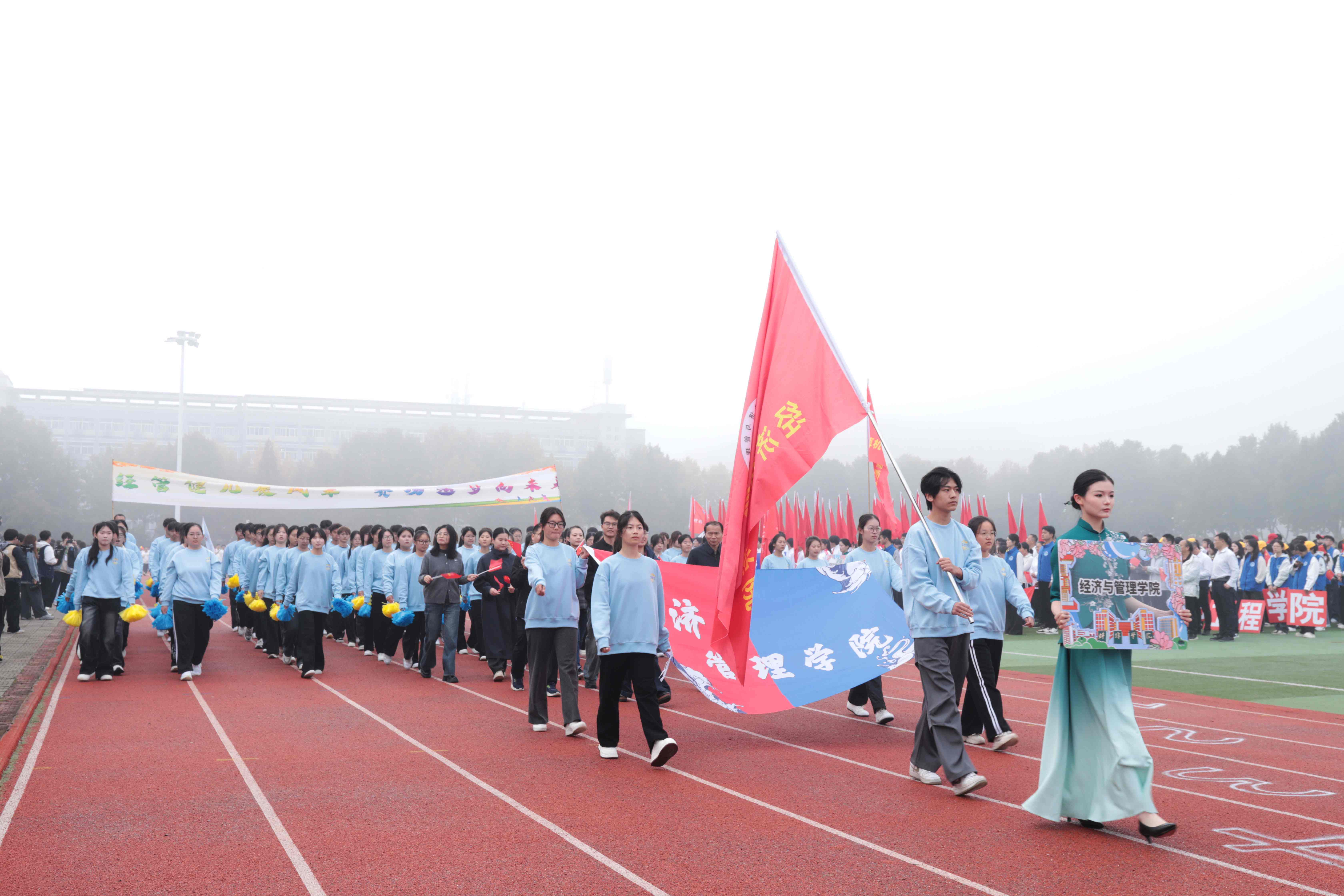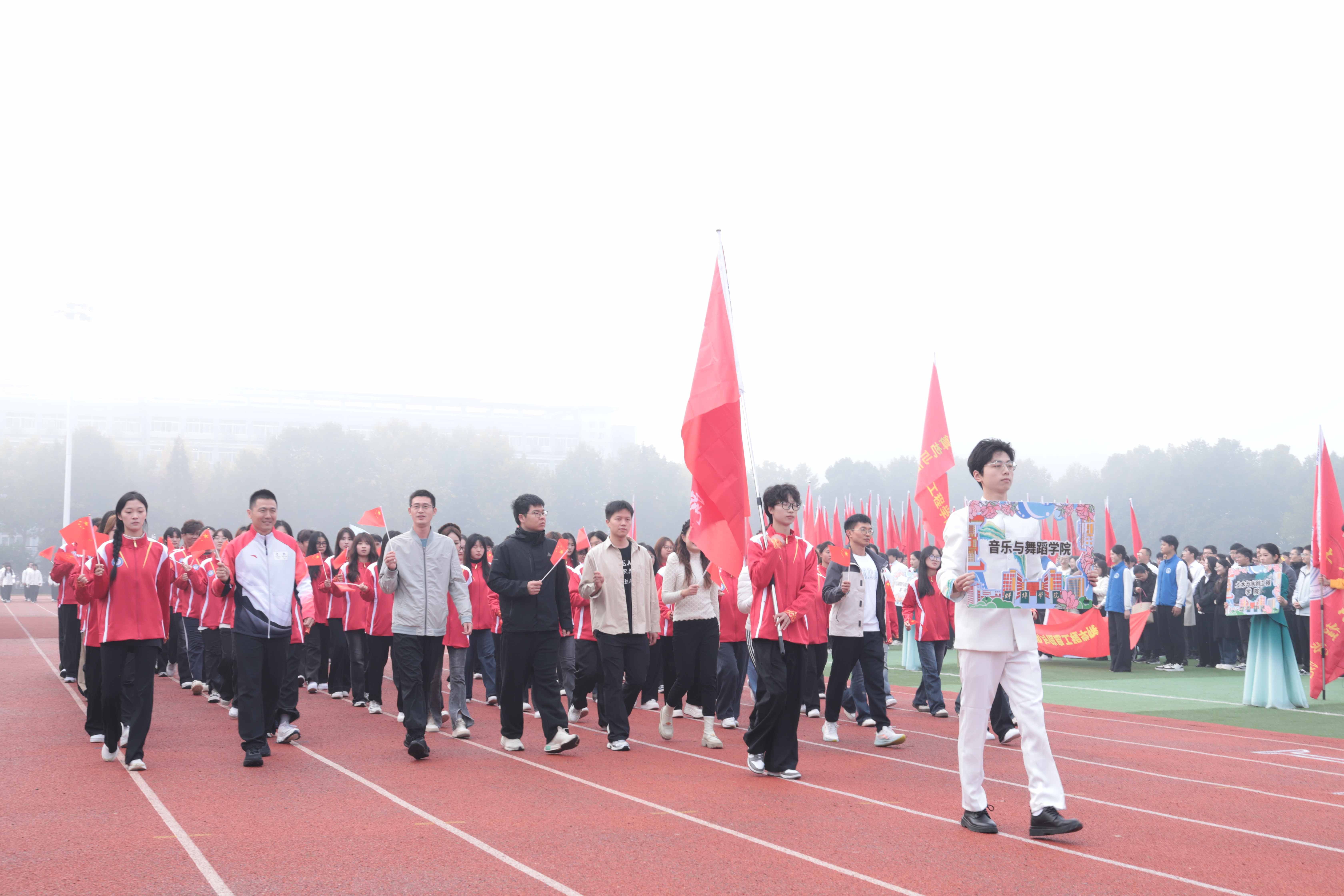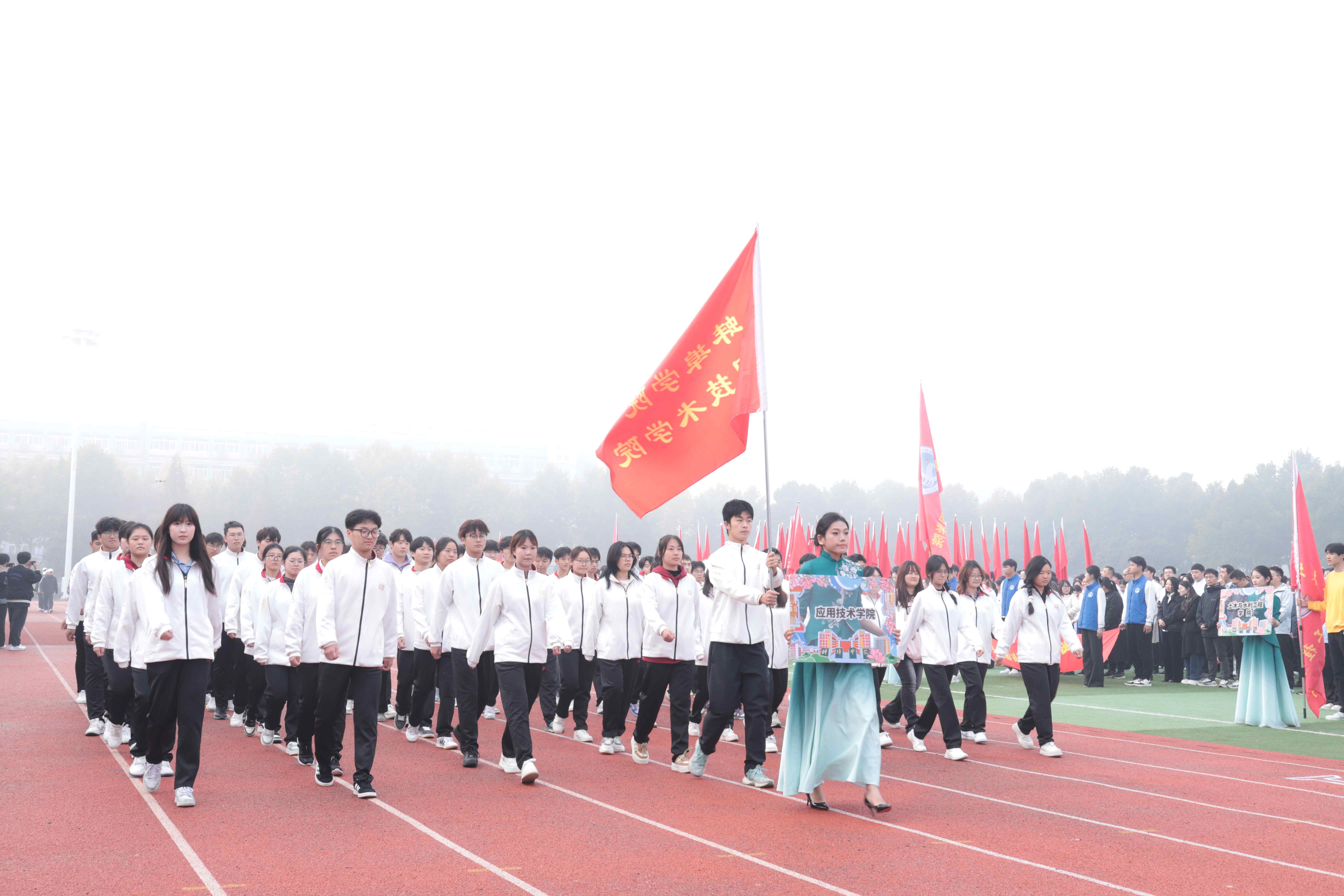 在雄壮的进行曲中,四位旗手护卫着鲜艳的五星红旗率先入场。紧随其后的红旗方阵,白衫红领,步伐铿锵,瞬间点燃全场热情。各学院方阵依次亮相,展现出独特的专业特色与青春朝气。