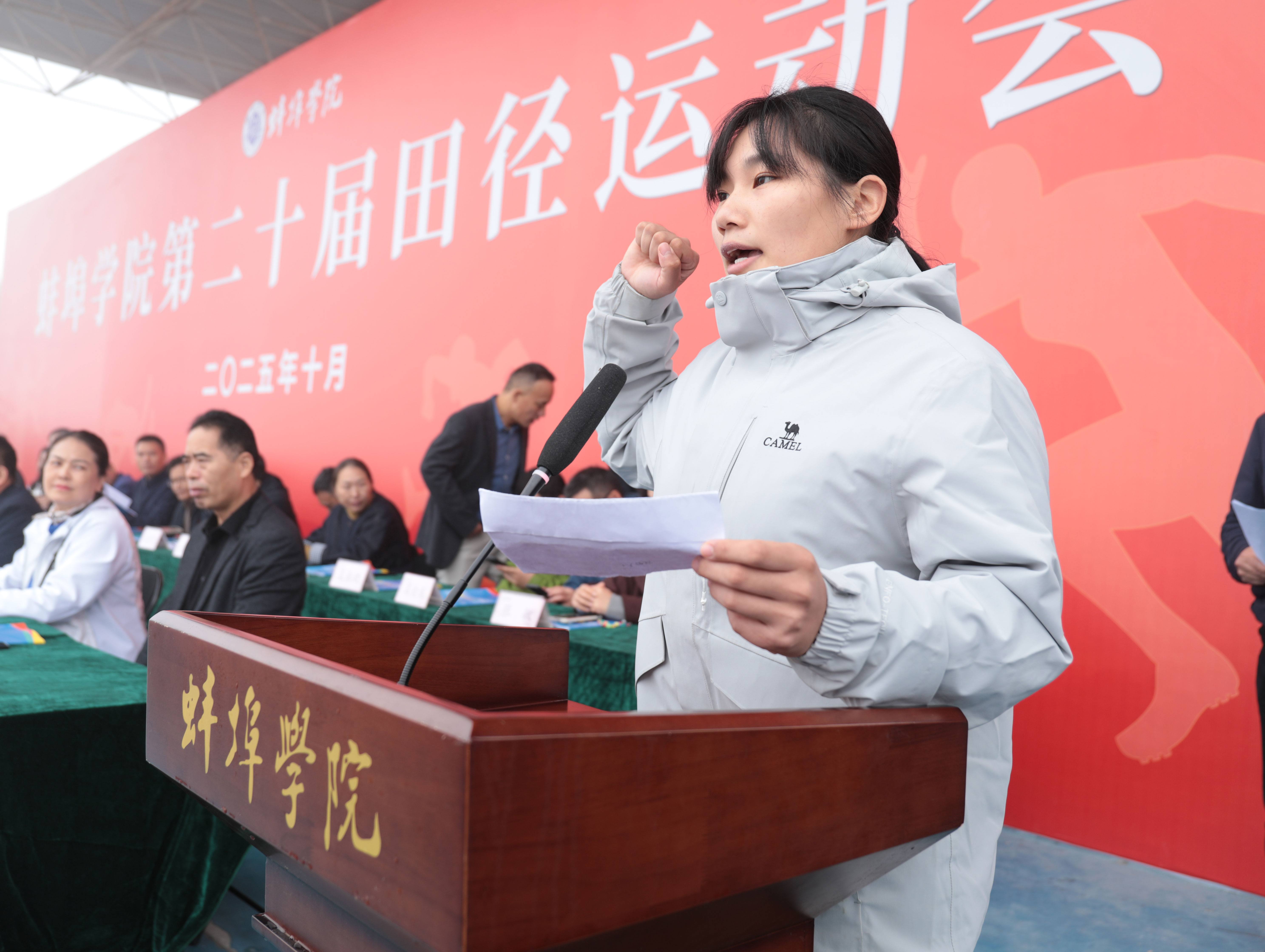 郭有强在开幕辞中表示,近年来学校始终把发展体育运动、弘扬体育精神,作为深化“五育并举”、促进学生全面发展的重要举措,已构建起课内外一体化教育教学体系。希望全体师生以运动会为起点,树立健康第一理念,让运动成为生活习惯;以运动会为平台,发扬更高、更快、更强、更团结的体育精神,展现蚌院学子昂扬向上的精神风貌;以运动会为契机,将顽强拼搏、团结协作的体育精神转化为干事创业的热情,为推进学校高质量发展贡献力量。
