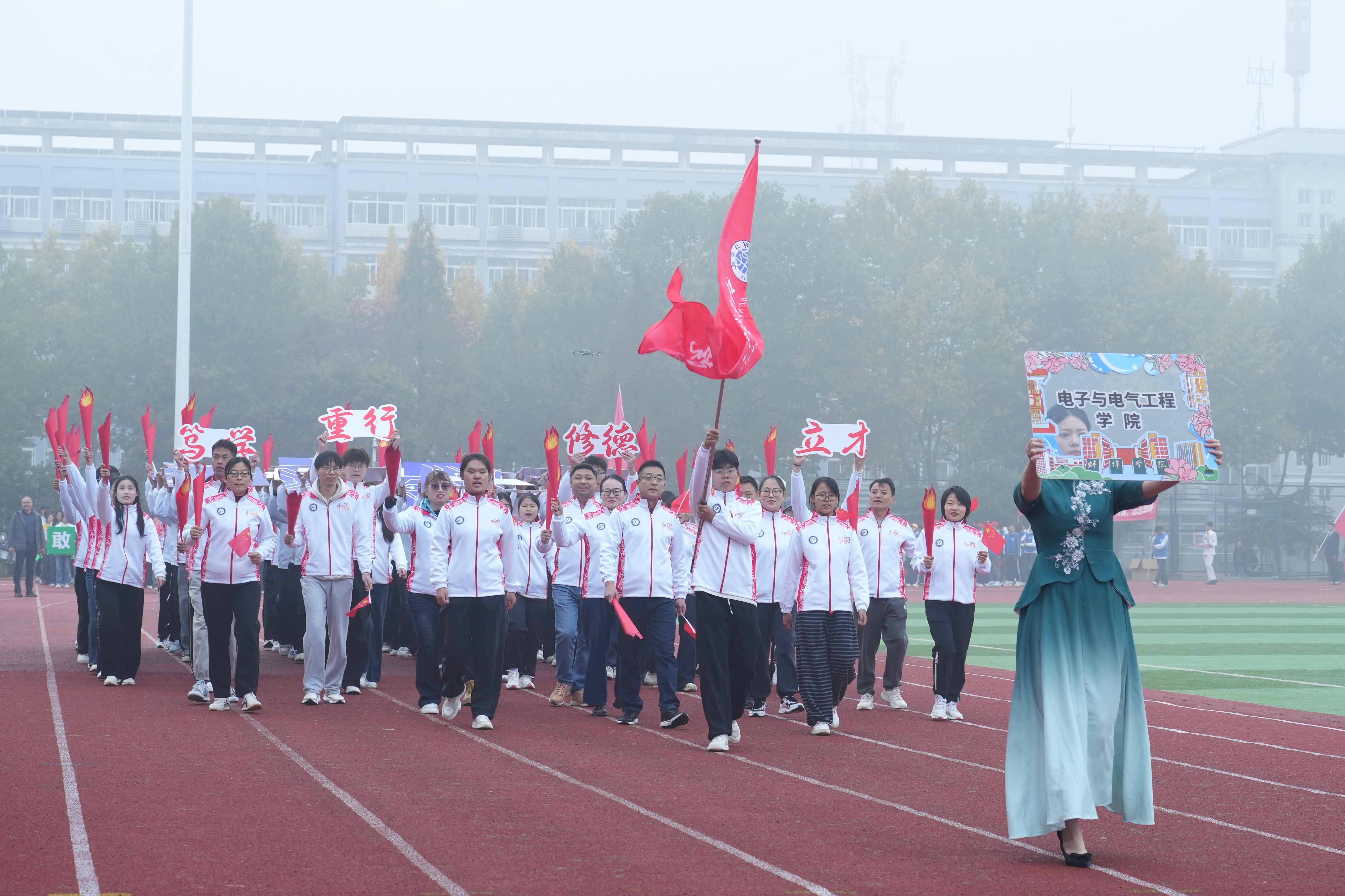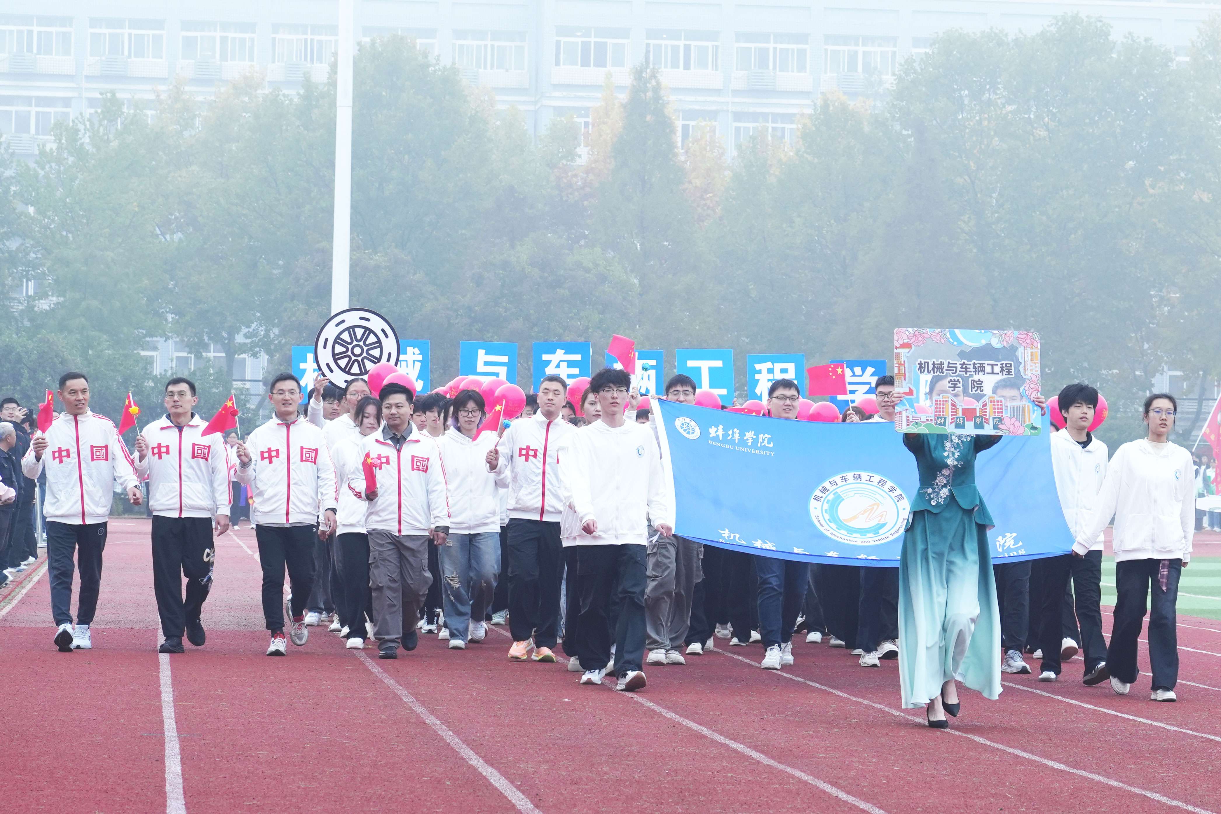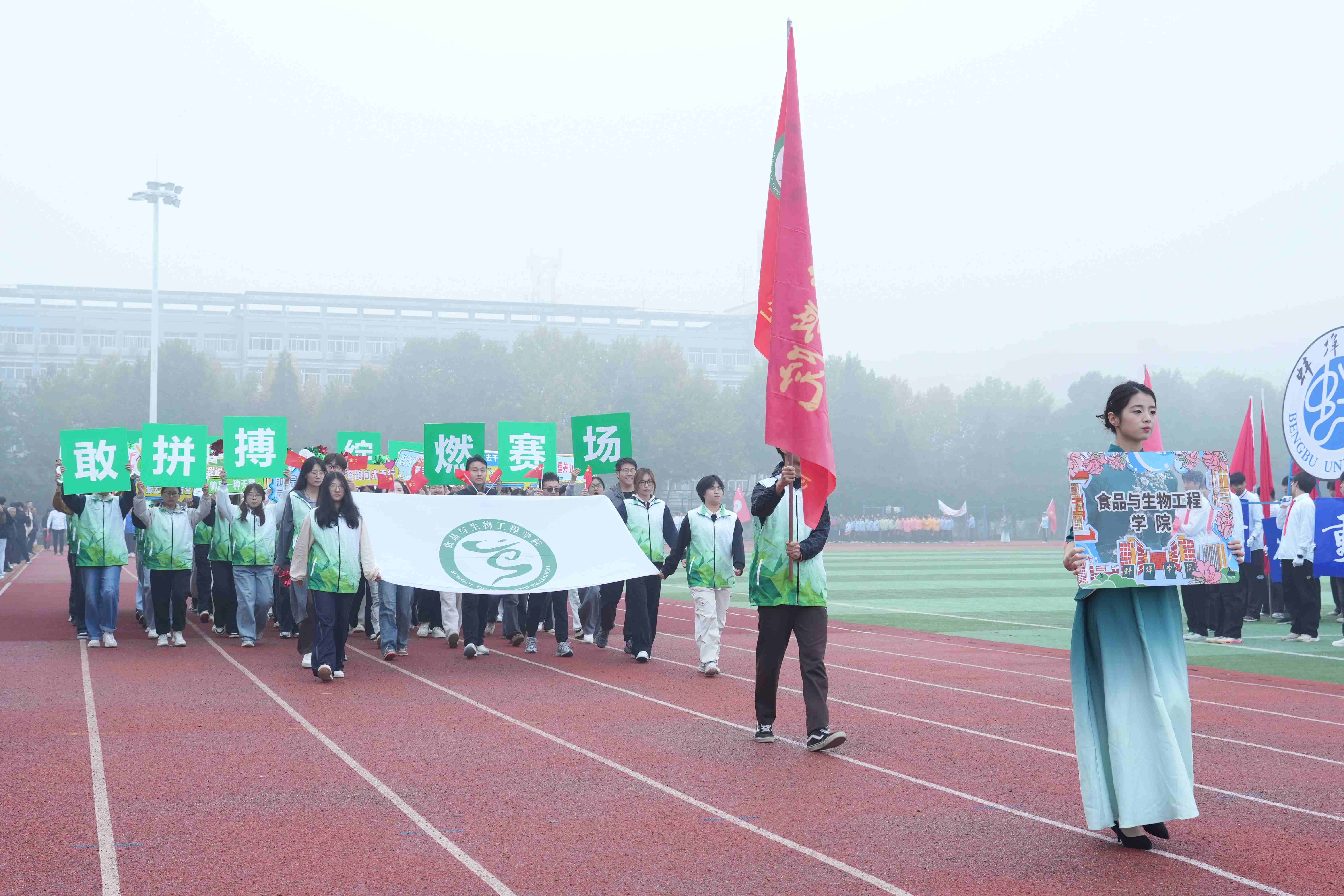 机械与车辆工程学院方阵以智造未来,精工笃行为信念,用国旗、气球与中国大字交织成炽热的中国红;电子与电气工程学院方阵步伐整齐,精神抖擞,以昂扬姿态诠释体育精神;食品与生物工程学院身着绿色统一服装,彰显食品安全理念,敢拼搏,燃赛场的口号响彻云霄;计算机与信息工程学院百余名学子手持键盘模型,展现代码织梦、技术创未来的专业特色。