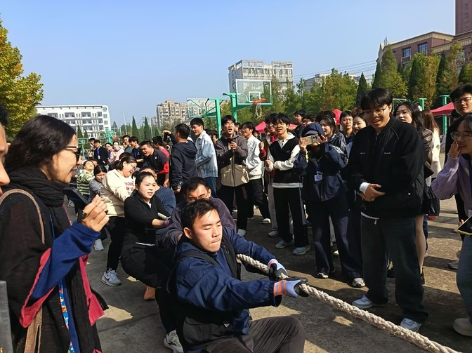 10月31日下午14时30分,拔河比赛在北篮球场正式开启。随着裁判哨声响起,双方队员齐声呐喊,使出浑身力气拉扯绳索,红带子在中线两侧来回移动,场面紧张激烈。场边啦啦队助威声、加油声此起彼伏,为参赛队员注入强劲动力。经过多轮精彩对抗,机械与车辆工程学院、计算机与信息工程学院、经济与管理学院、材料与化学工程学院、土木与水利工程学院、机关一代表队斩获拔河比赛前6名。