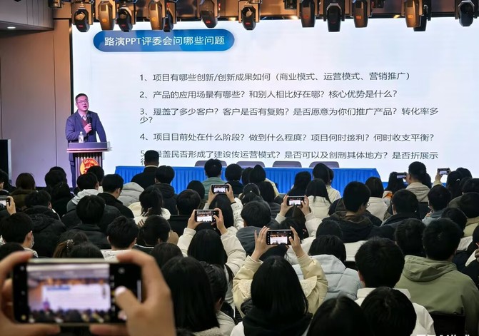 讲座最后,许飞鼓励全体学子以“挑战杯”竞赛为契机,勇于突破思维局限,将专业知识与社会实践紧密结合,在创新中锤炼本领,在创业中实现成长。