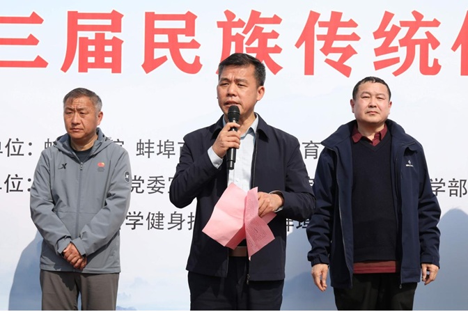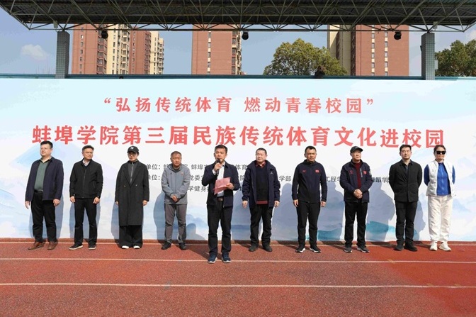 张尔桂在致辞中表示,学校始终高度重视民族传统体育文化传承与校园文化建设深度融合,持续推动武术、花鼓灯、五禽戏等传统体育项目融入课堂教学与校园生活,育人成效显著。学校将以此次活动为契机,进一步推动民族传统体育从“进校园”走向“驻校园”,持续打造具有蚌埠学院特色的民族传统体育育人模式,引导广大青年学子在运动中强健体魄、传承文化、砥砺品格、增强自信。