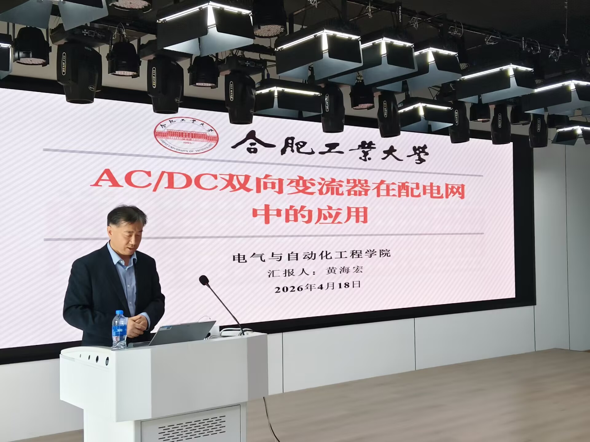 随后,黄海宏教授作了题为《AC/DC双向变流器在配电网中的应用》的学术报告。他从电力电子技术在电力系统中的战略地位切入,重点讲解了AC/DC双向变流器的核心原理,围绕PWM整流器能量双向流动、功率因数可控、直流侧稳压等关键特性,结合有源电力滤波器、三相四线制电能质量综合管理器、构网型变流器等工程装备与实测数据,生动展现了双向变流技术在提升电网运行效率、改善电能质量、支撑新能源消纳等方面的核心价值。
