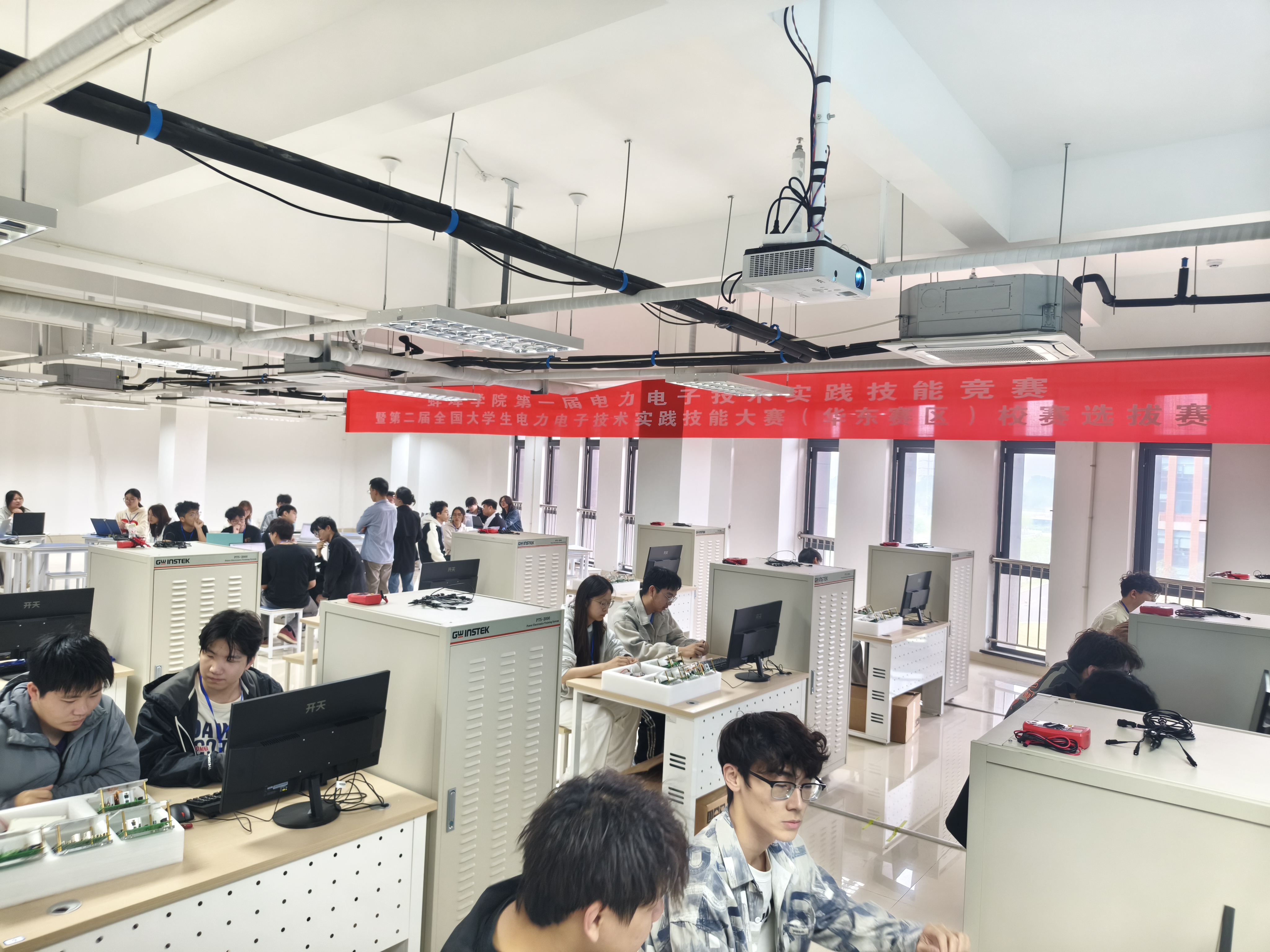 4月18日上午,蚌埠学院第一届电力电子技术实践技能大赛暨第二届全国大学生电力电子技术实践技能大赛(华东赛区)校赛选拔赛,在理工楼电力电子技术实验室举行。本次大赛由教务处指导、电子与电气工程学院承办,安徽芒课教育科技有限公司协办。合肥工业大学电气与自动化学院副院长、全国大学生电力电子技术实践技能大赛(华东赛区)秘书长黄海宏教授现场指导。