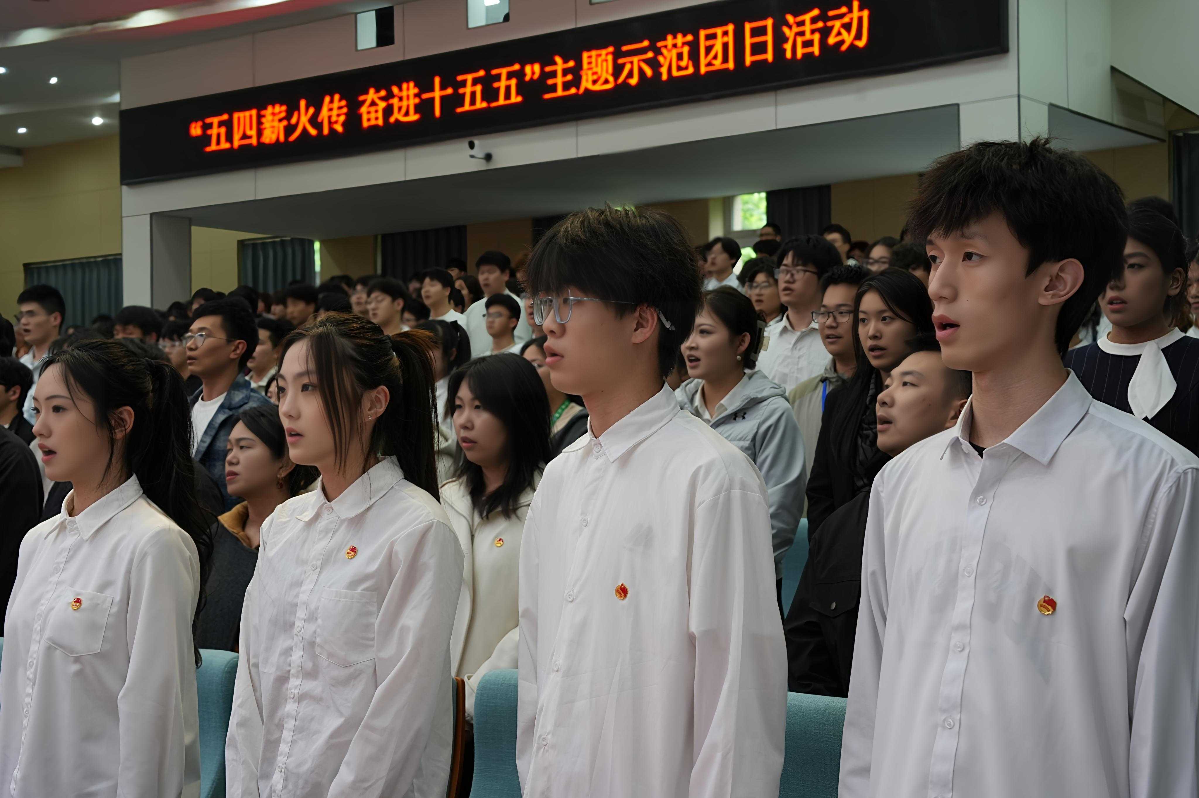 活动在庄严的国歌声中拉开帷幕。新团员示范入团仪式上,老团员代表为新团员代表佩戴团徽、颁发团员证和团章。全体团员面向团旗庄严宣誓,铿锵誓言彰显新时代团员的坚定信念与责任担当。