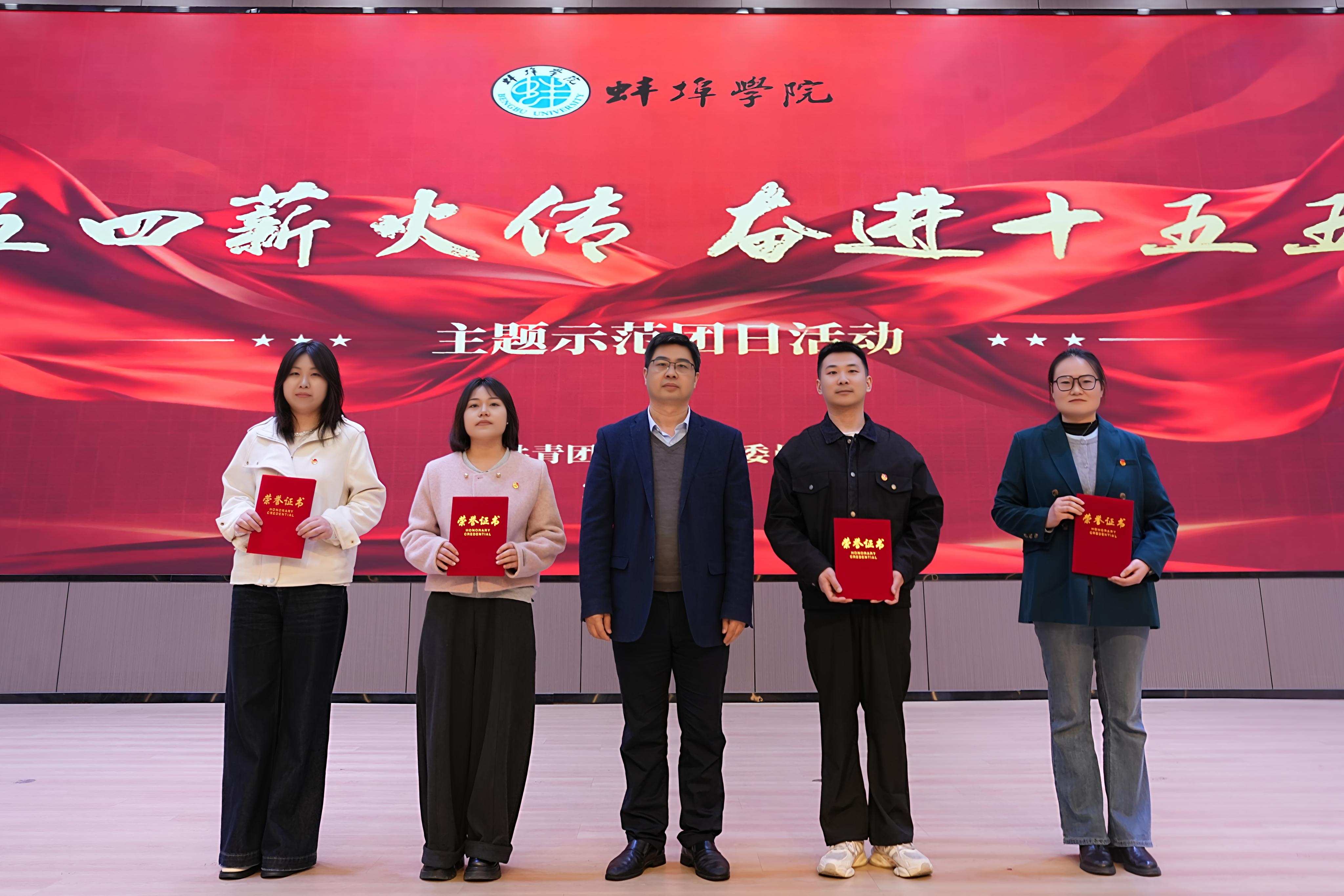 为传承弘扬五四精神,引领广大团员青年坚定理想信念、勇担时代使命,奋力投身“十五五”发展新征程,4月22日,蚌埠学院隆重举行“五四薪火传奋进十五五”主题示范团日活动。学校党委副书记方贤文应邀出席,校团委书记朱程,各学院党委书记、副书记、团委负责同志及团员青年代表共同参加活动。活动由校团委副书记任旭主持。