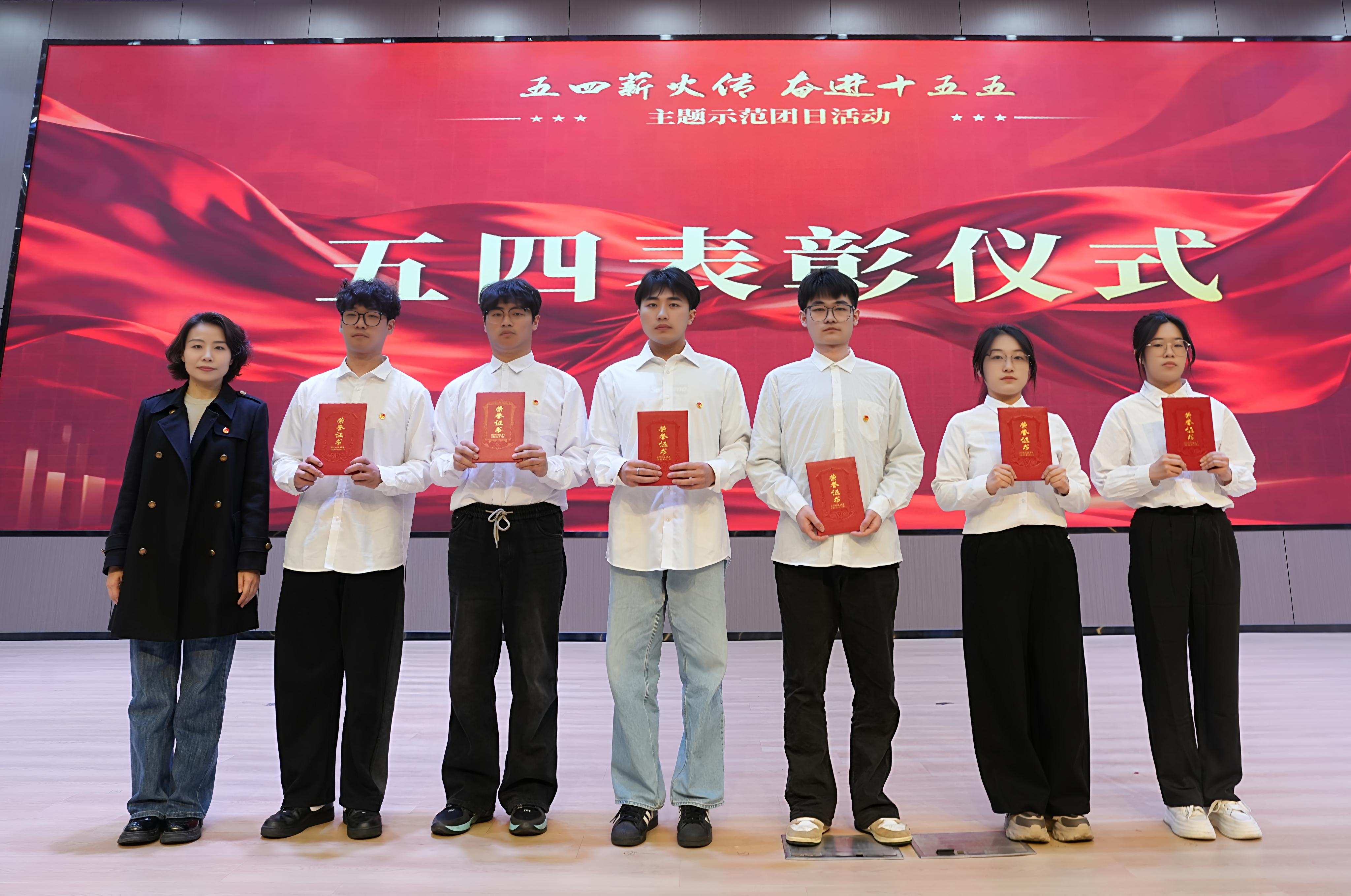 五四表彰仪式上,学校对2025年度涌现的先进集体与个人进行表彰,共表彰五四红旗团支部、十佳团员、十佳团支书等7类优秀个人或集体。电子与电气工程学院团委、计算机与信息工程学院团委、材料与化学工程学院团委、土木与水利工程学院团委以扎实的基层团建和丰硕的创新实践成果荣获“五四红旗团委”称号,方贤文为“优秀团委书记”刘斯文、谢齐、陈艳文、徐丹丹颁奖。