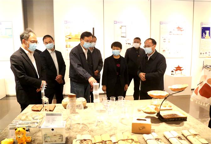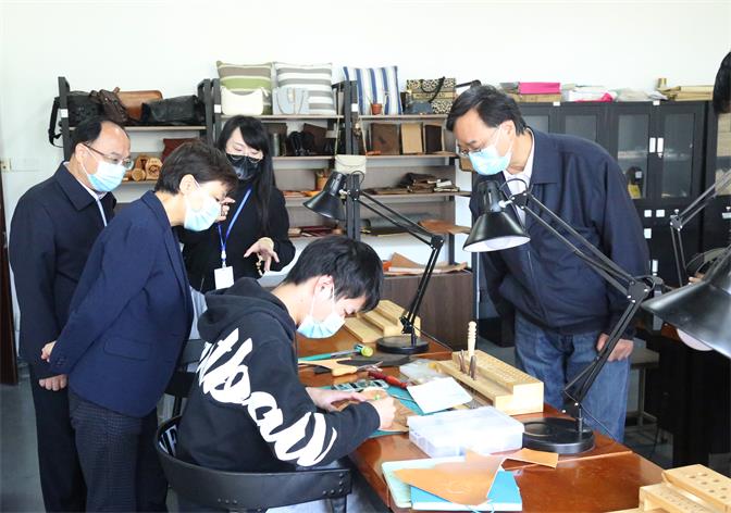 在艺术创意工坊和美术馆,王翠凤对学生的文创设计产品颇感兴趣,她拿起学生自主设计制作的瓷器、皮具、3D打印产品等作品仔细端详,并不时对学校产教融合、校企合作等内容仔细询问。她十分认可学校美术馆的建设运行和大学生美育俱乐部的创新,“这对蚌埠学院来说,是一个很好的特色载体和特色推广的平台。”她鼓励学校进一步把学生创新拓展与校企合作结合起来,结合人才培养、结合促进就业、结合企业需求,提升学校融入地方产业发展、服务地方能力的水平。