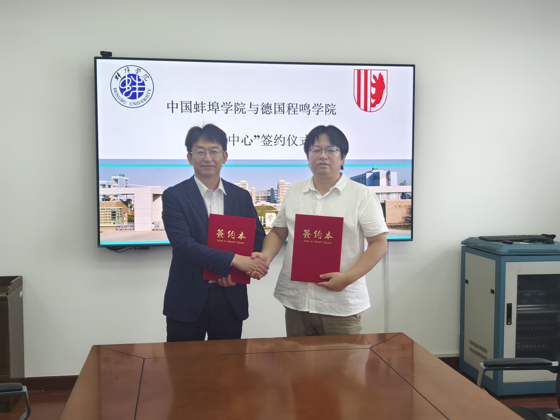 张亚新对程鸣一行的到来致以热烈欢迎,他向来宾详细介绍了我校的办学特色与发展现状。双方共同签署了《中德教育文化研究中心协议》,并围绕该中心的建设目标、具体合作领域及实施方案,进行了深入探讨,双方一致同意未来依托该平台深化两国高校协作,推进中德教育合作项目,促进双方在教育、文化等领域的深度交流与融合创新。